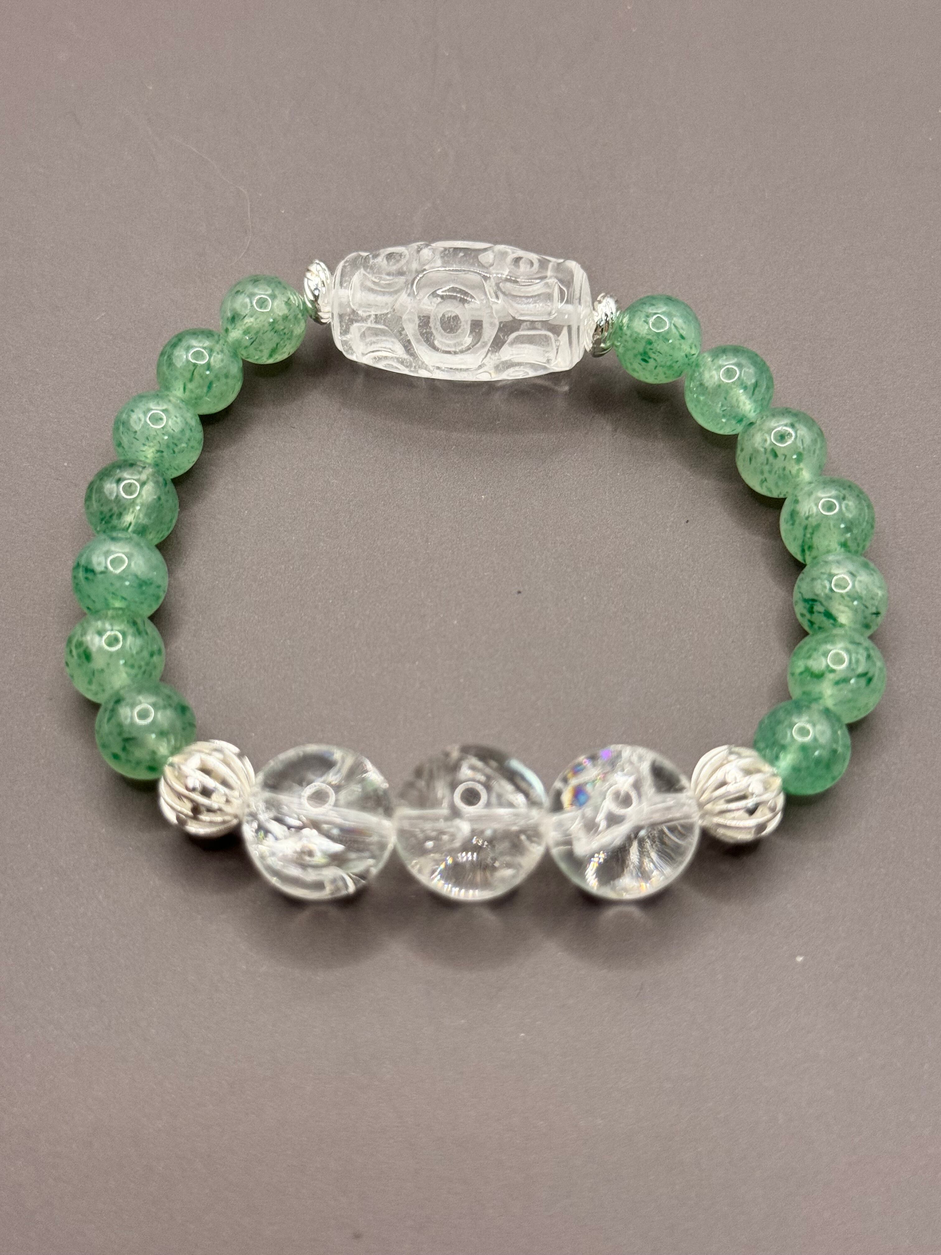 優しいグリーンが爽やかなブレスレットです。ストロベリークオーツは心を柔和にしてくれ、人に対する寛容さや親切心の大切さを再認識させてくれます。優しい気持ちを持つことで周りとの人間関係を円滑にしてくれることでしょう。