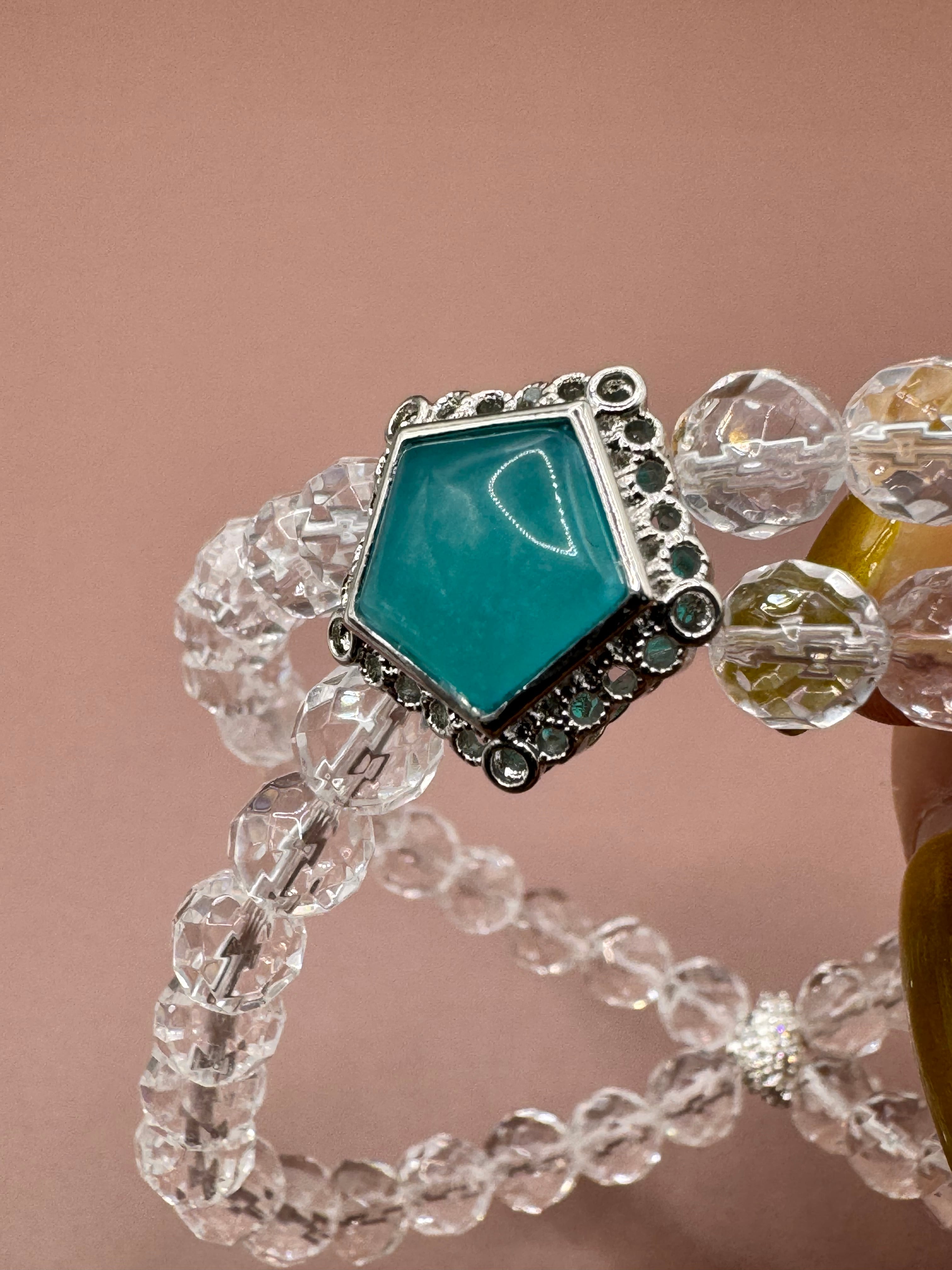 美しいアマゾナイトを使用したブレスレットは、心に安らぎとポジティブなエネルギーをもたらす魅力的なデザインです。アマゾナイトは、その美しい青緑色が心のリラックスを促し、ストレスを和らげる効果が期待できます。さらに、この石はコミュニケーションをサポートし、他者との関係をより良いものへと導く力を持っています。また、希望や幸運を引き寄せるエネルギーもあり、ポジティブな考え方を育む手助けをしてくれるでしょう。このブレスレットを身につけることで、日常生活の中で心の安定を感じたり、幸運を呼び込む機会が増えるかもしれません。