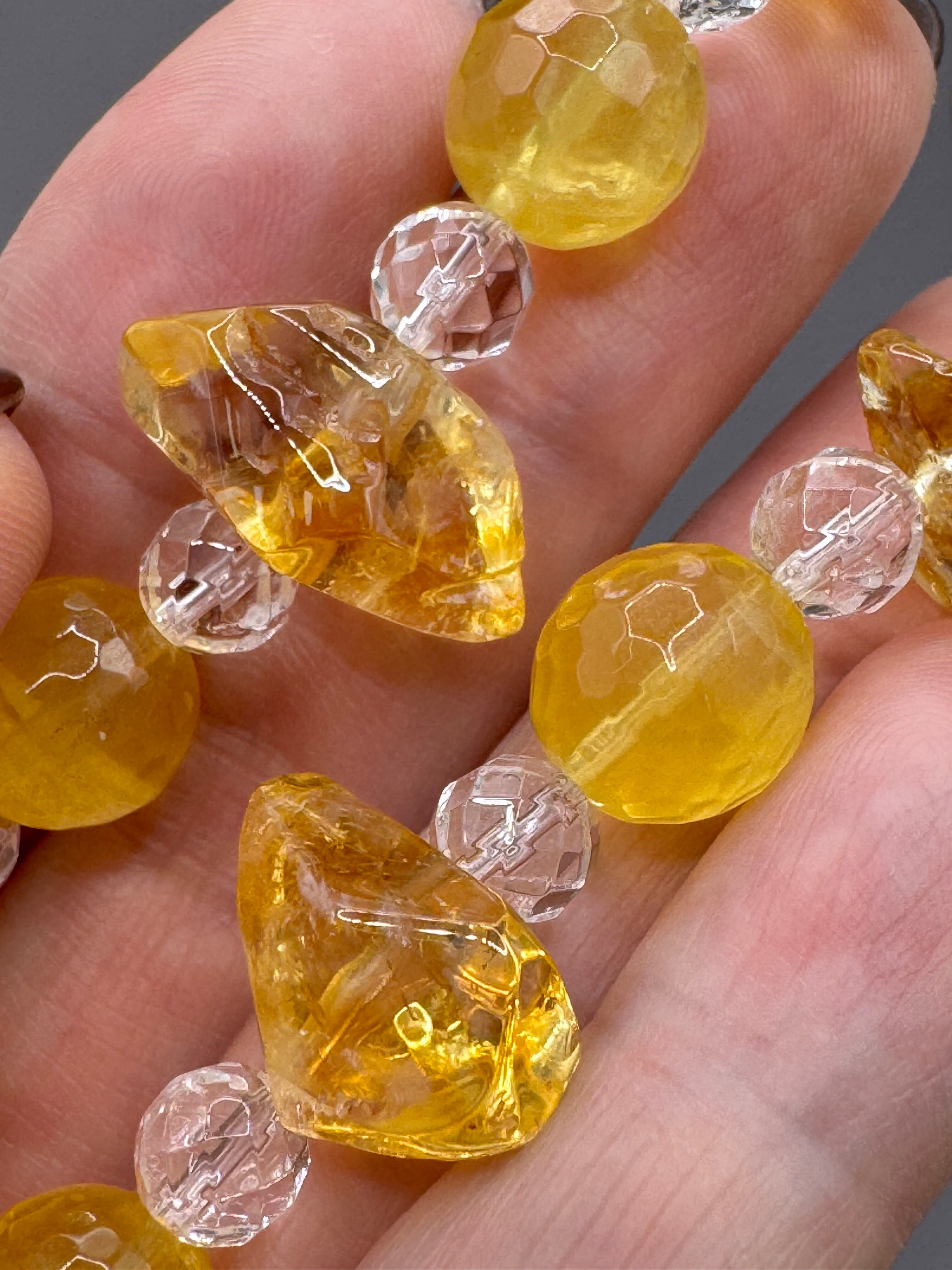 美しいシトリンとフローライト、クリスタルを使用したブレスレットは、心身ともにサポートする魅力的なデザインです。シトリンは持つ者に繁栄とポジティブなエネルギーをもたらし、自己肯定感を高める助けになります。フローライトは集中力を向上させ、明晰な思考を促進します。また、クリスタルはエネルギーを浄化し、内面のバランスを整える役割を果たします。このブレスレットを身につけることで、日常生活の中で自信を持って行動できるようになり、心の安定を感じながら豊かな自己表現ができるでしょう。