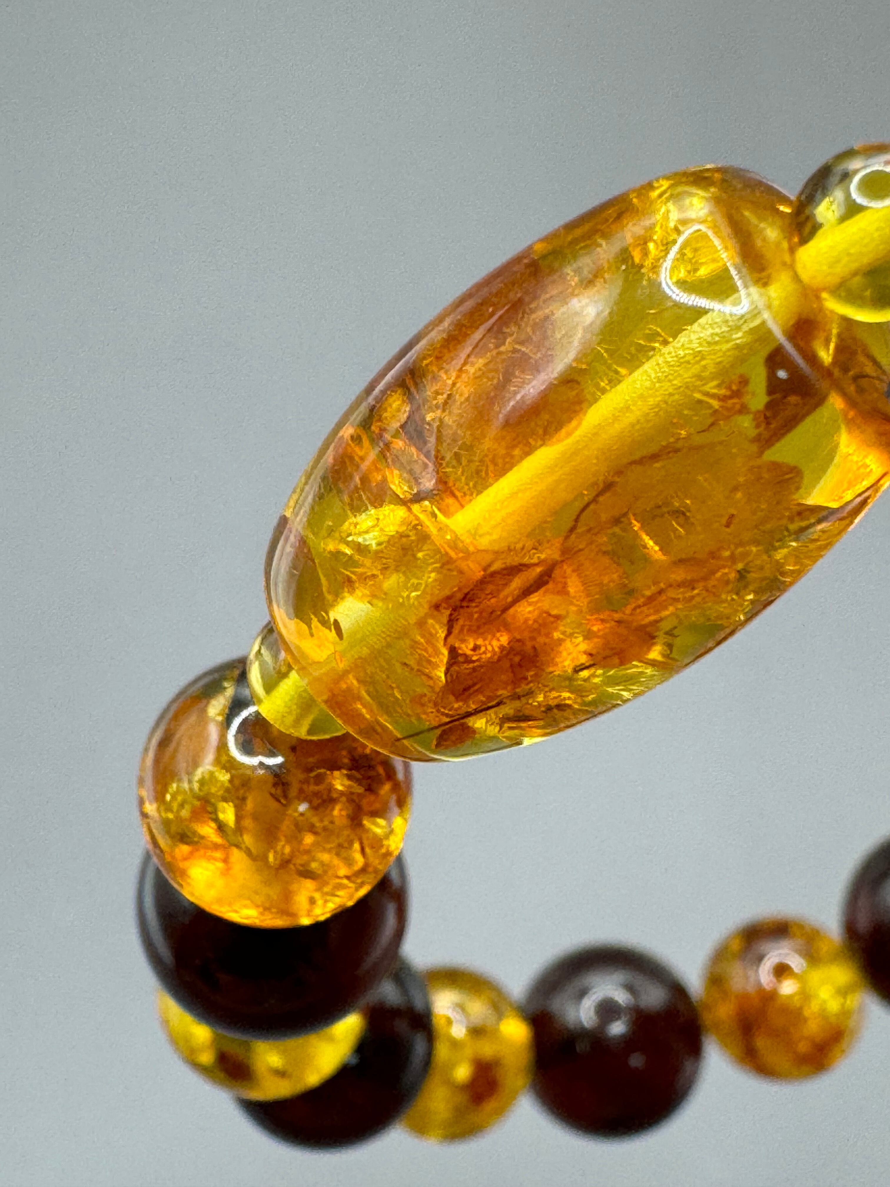 美しい花アンバーとレッドアンバーを使用したブレスレットは、心にあたたかさをもたらし、内面的な成長を促すデザインです。花アンバーはストレスを和らげ、日常の疲れから解放される助けをしてくれます。一方、レッドアンバーは活力を与え、ポジティブなエネルギーで満たしてくれるでしょう。このブレスレットを身に着けることで、日々の生活の中で心がほっとしながら、自分自身の可能性を広げる感覚を体験できるかもしれません。
